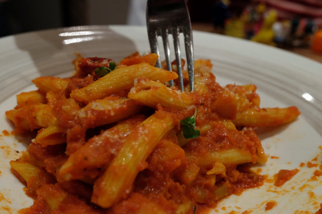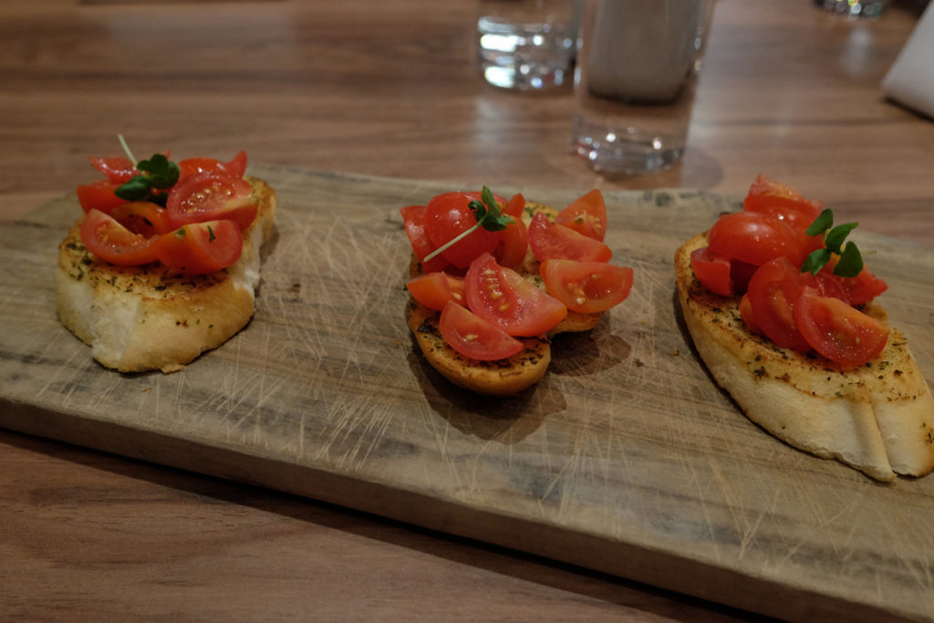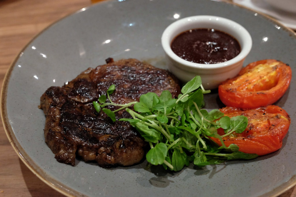For our starters, my husband and I had the bruschetta and for mains I chose the penne all’arrabbiata and my husband selected the rib eye steak and chunky chips, all of which were delicious.