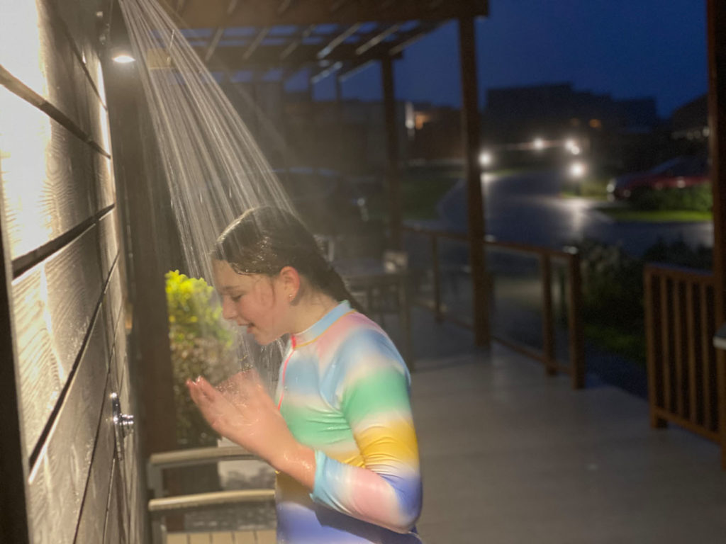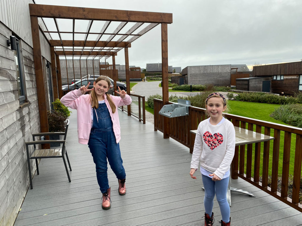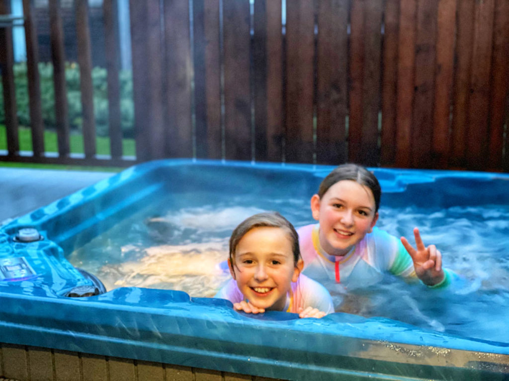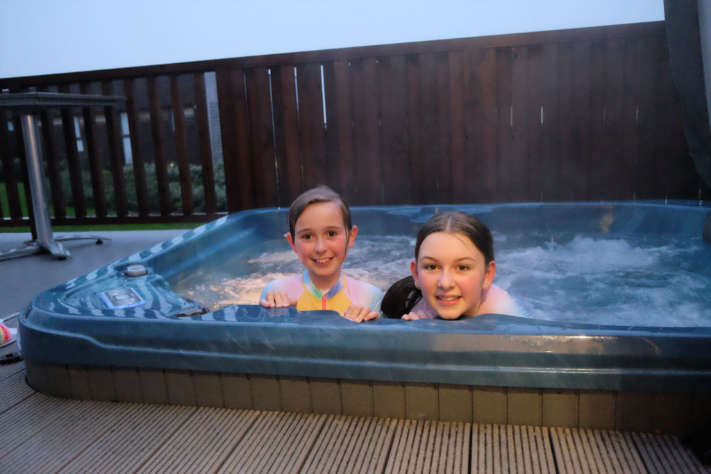 The kids immediately spotted our sunken outdoor hot tub on the decking area of our lodge and after a quick change made a beeline for the warmth of the hot tub – they loved it.