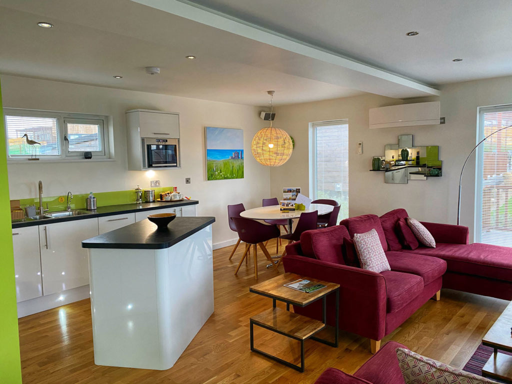 These single storey designer eco-lodges are gorgeous and have been built to sustainable principles, including air to water heat pumps which provide all heating and hot water.