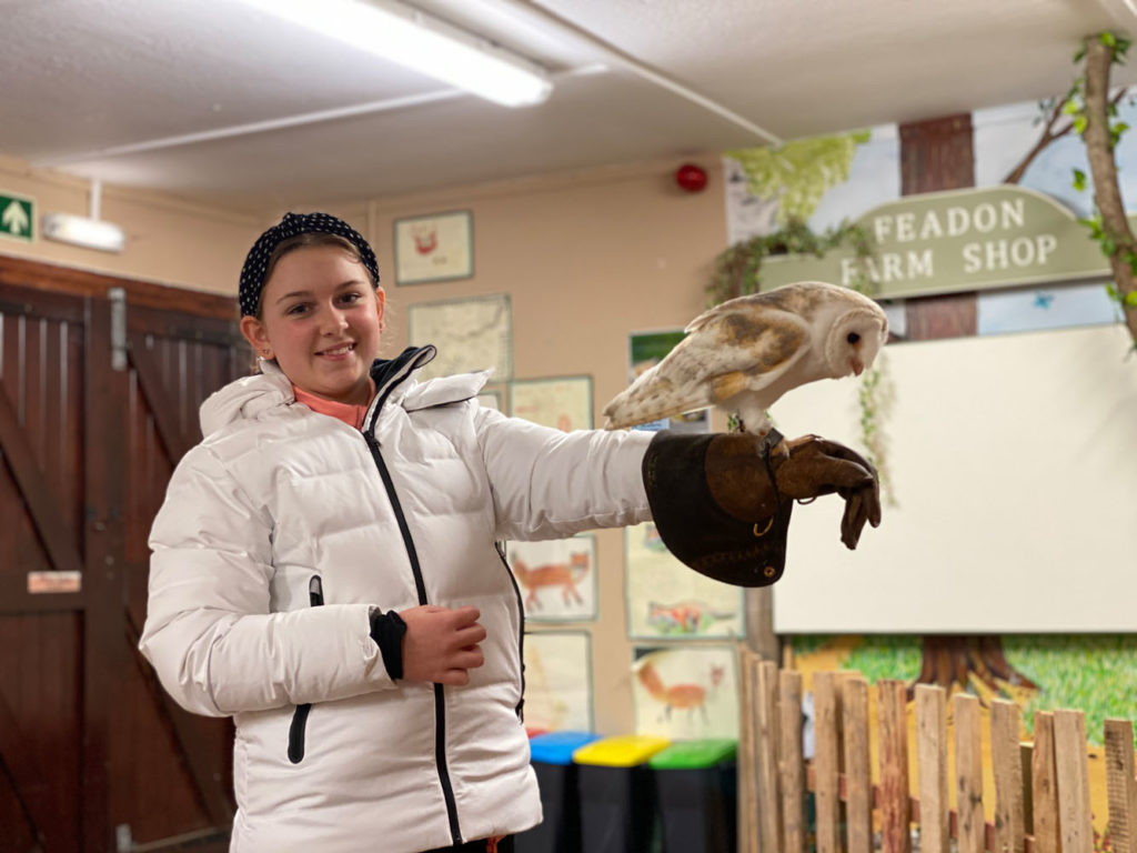 Holly loves animals so Feadon Farm was a dream activity for her which began with meeting Sly the barn owl. After a quick briefing we had the opportunity of the owl taking off and landing from our hand, the look on the girls’ faces was priceless.