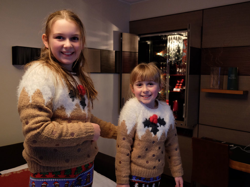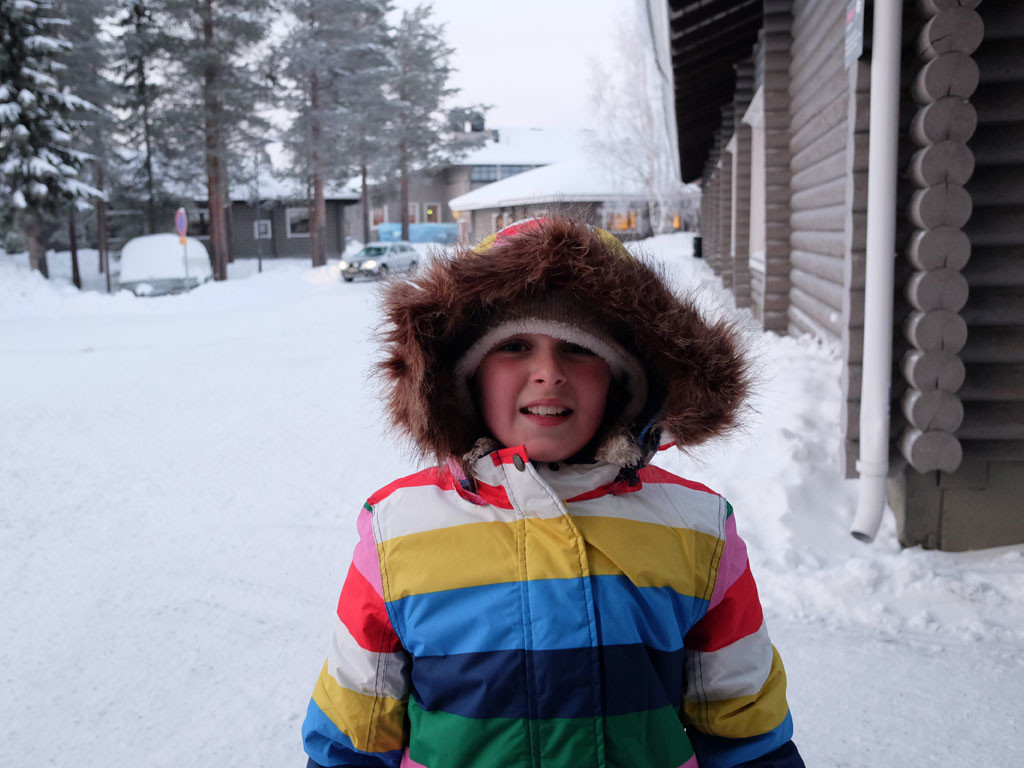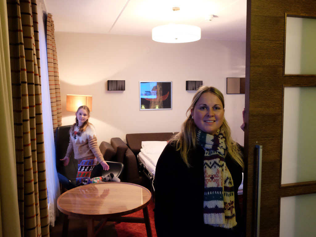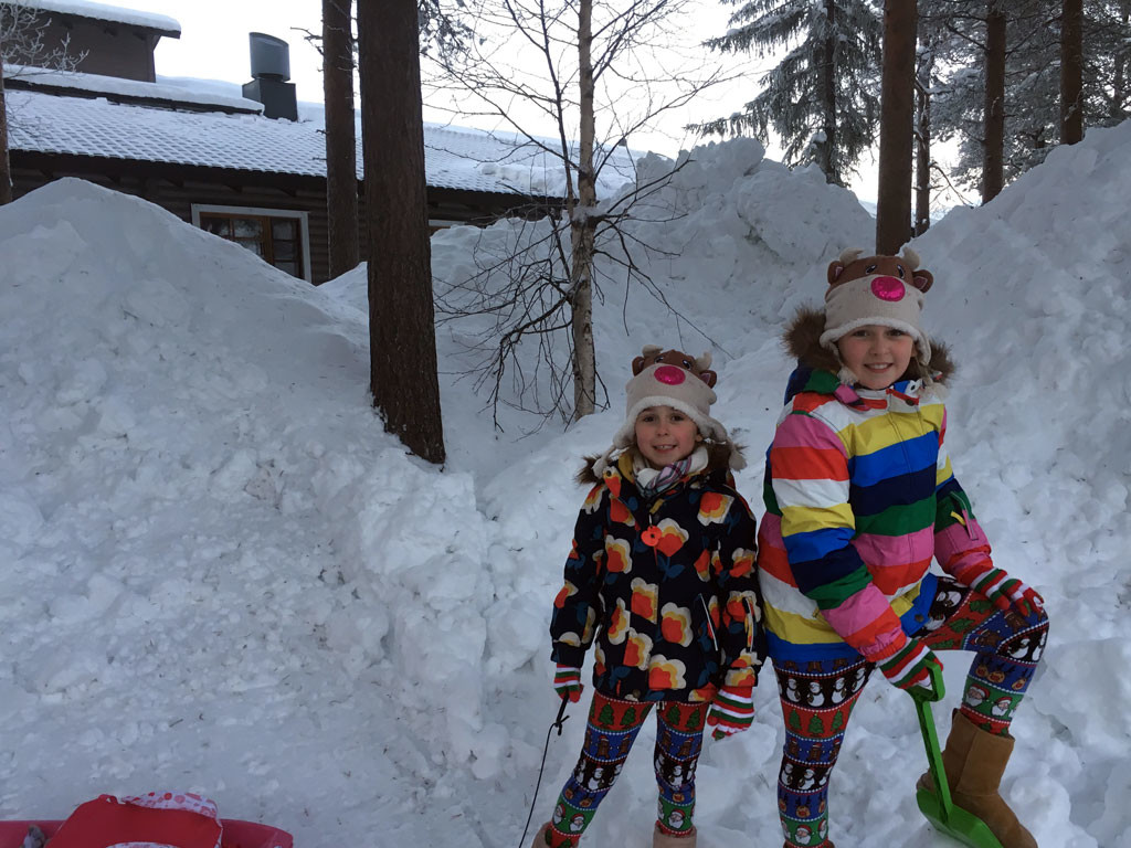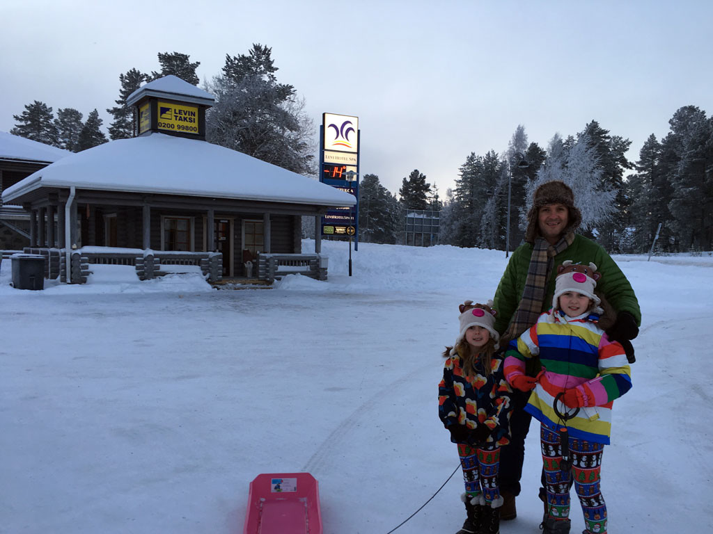 The hotel reception and restaurants are in a separate building a short walk from the rooms and the girls excitedly picked up two complimentary sledges which are dotted around the hotel for guests to use. In deep snow and -17 temperatures we used the sledges to help transfer our luggage to our room – we were in Lapland after all.
