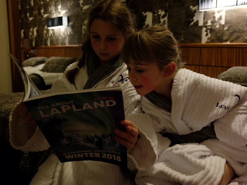 I always think a sign of a good hotel is when the girls start making themselves at home, which they did at the Levi Hotel Spa, covering their beds with some of their favourite toys from home. They loved the fact that their bed was close to the fridge in the room which we think they kept raiding for midnight snacks!
