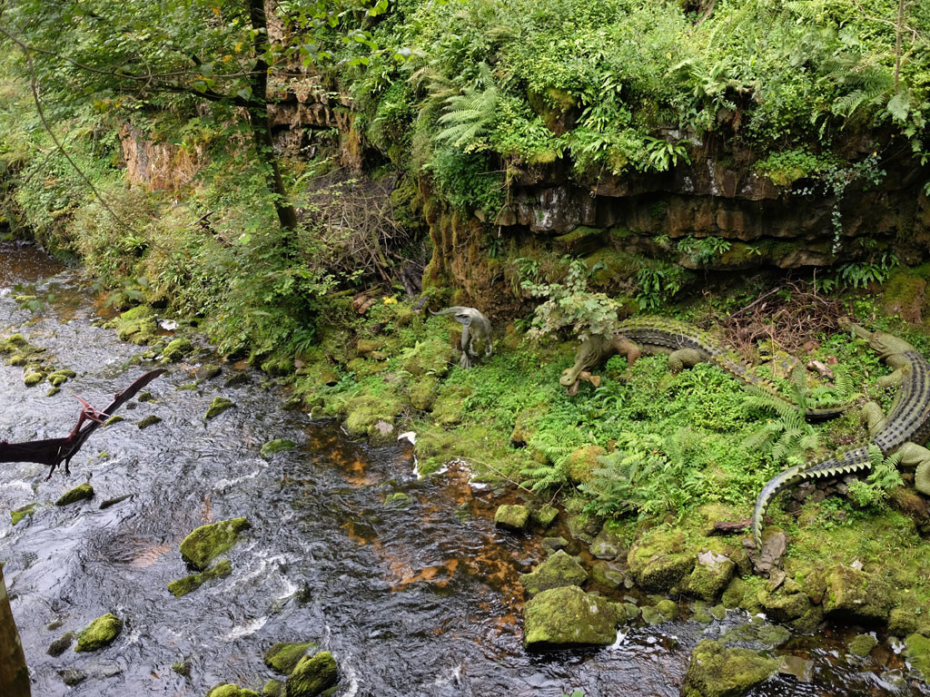 Walking past a recreation of an Iron Age farm on our way to the second cave we encountered more dinosaurs, it was like Jurassic Park in the Welsh mountains.  The Dinosaur park here is one of the largest in the world.