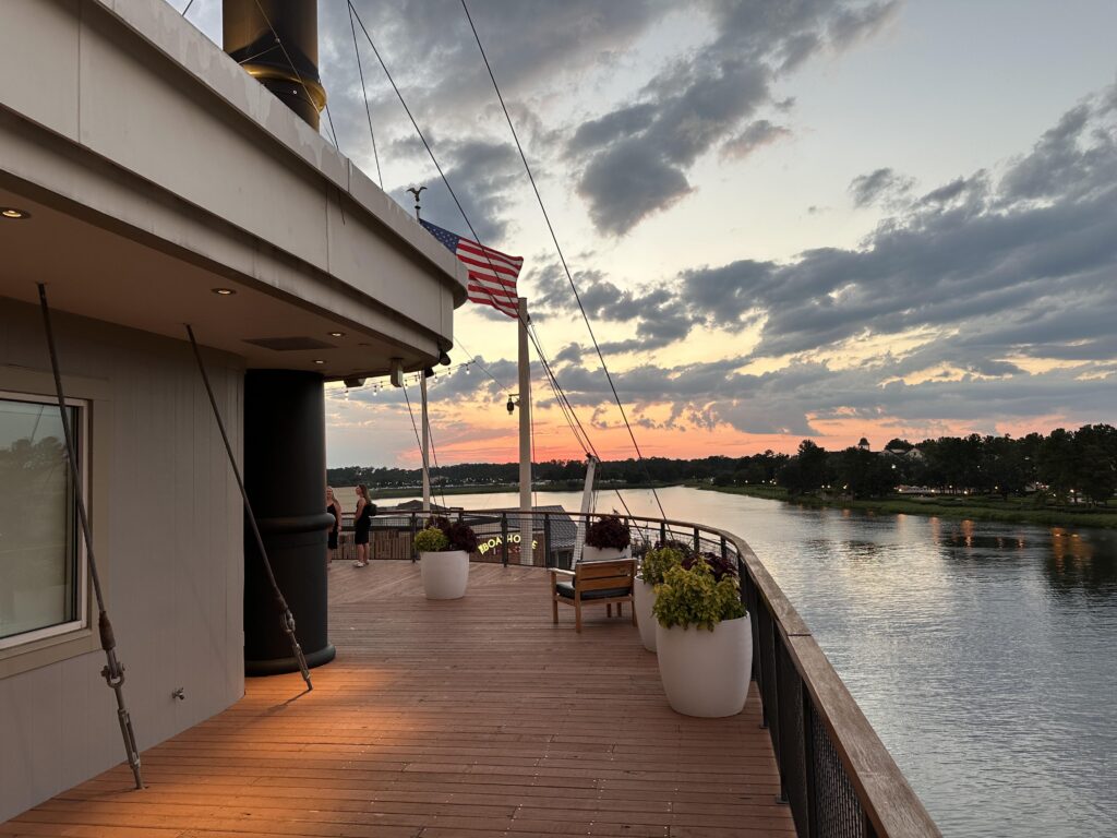 After our meal, we headed up to the top deck of the paddle steamer. This is one of the hidden gems of Paddlefish, and it’s an experience that is well worth checking out. The views over Disney Springs and Saratoga Springs from up there are some of the best anywhere in Disney Springs, especially at sunset.