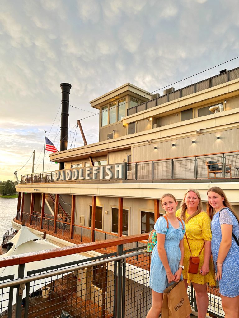 We were so excited to be able to get a reservation here, it’s not everyday that you get to dine on a giant paddle steamer anchored on Lake Buena Vista.  The girls thought it was so cool to be dining onboard a boat and I loved the classic yacht style theming on board, which had an elegant and modern ambience to it.