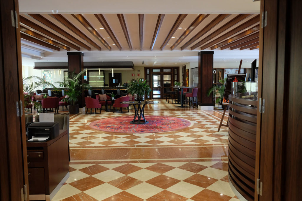 I loved the public areas of the hotel which like its exterior are meant to evoke a grand Spanish architecture with exposed wooden beams, opulent artwork and grand staircases. The beauty is that the lobby area opens up onto a large terrace overlooking the pool which was one of my many favourite parts of the hotel.