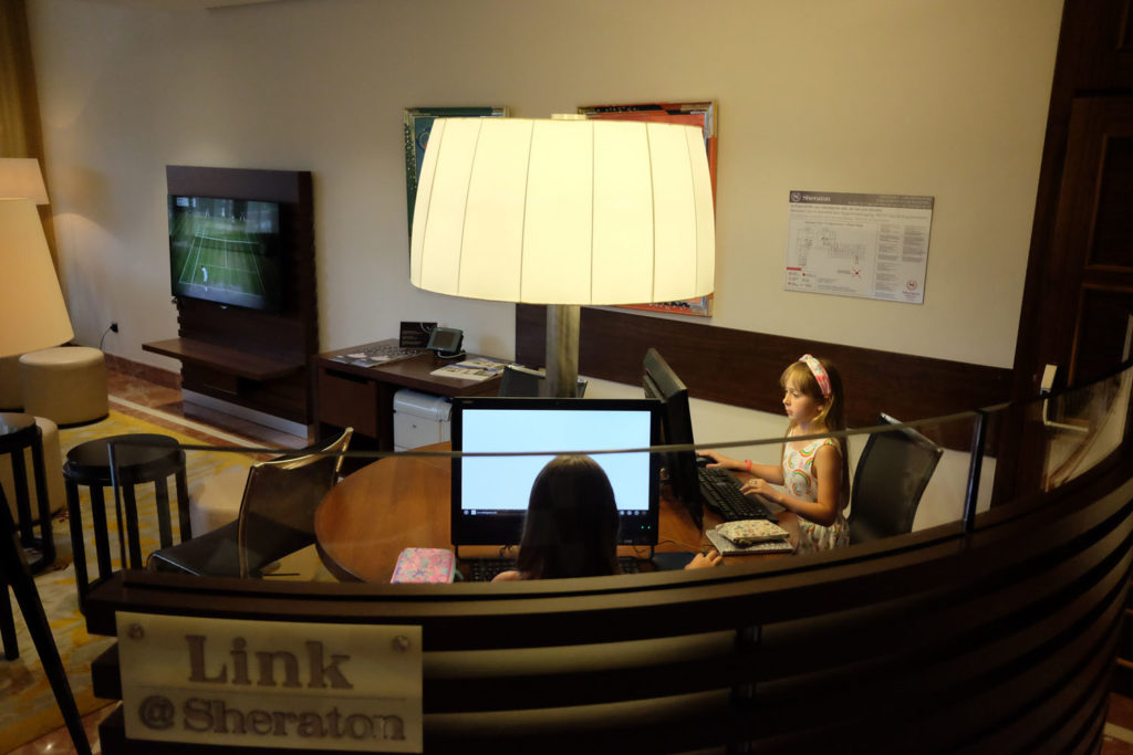 At the end of each night we made our nightly stop at Link Sheraton in the hotel lobby.  Here the girls enjoyed practicing their IT skills creating posters and artwork whilst Ian and I would relax in the comfortable lobby bar or library area.