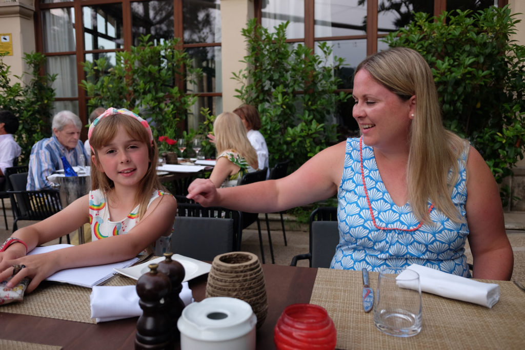 The girls love tennis so we took advantage of the tennis courts at the hotel for an early morning family game before it got too hot.