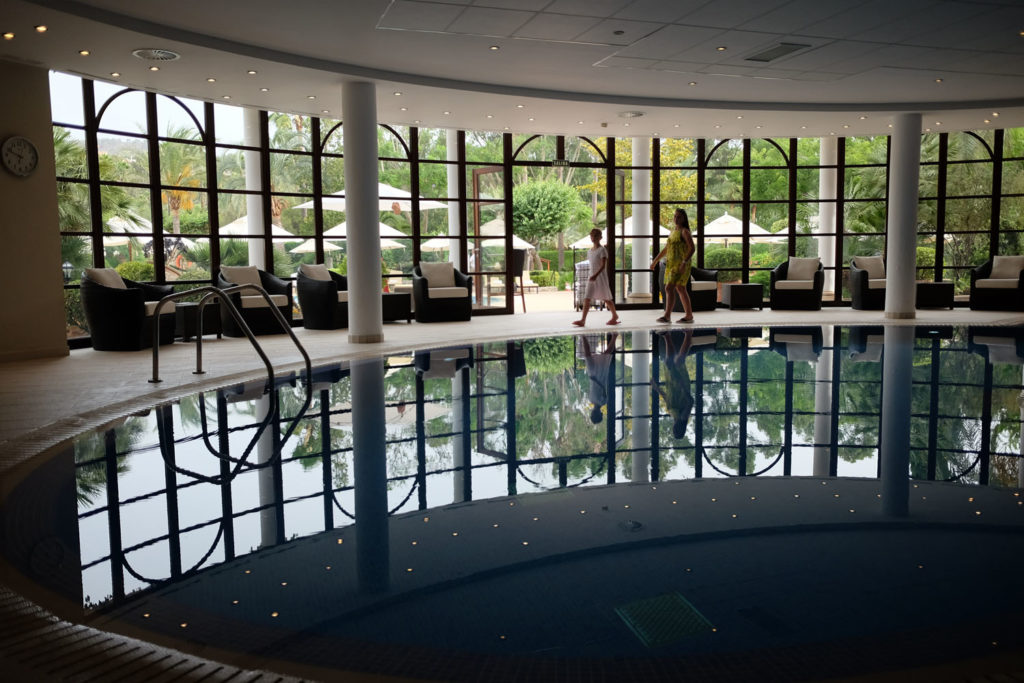 The pool at the spa is equally as impressive with its floor-to-ceiling windows overlooking the outdoor pools. The spa pool was a saviour for the girls as one afternoon we had an unusual rain storm which meant that they could continue having fun in the water whatever the weather.