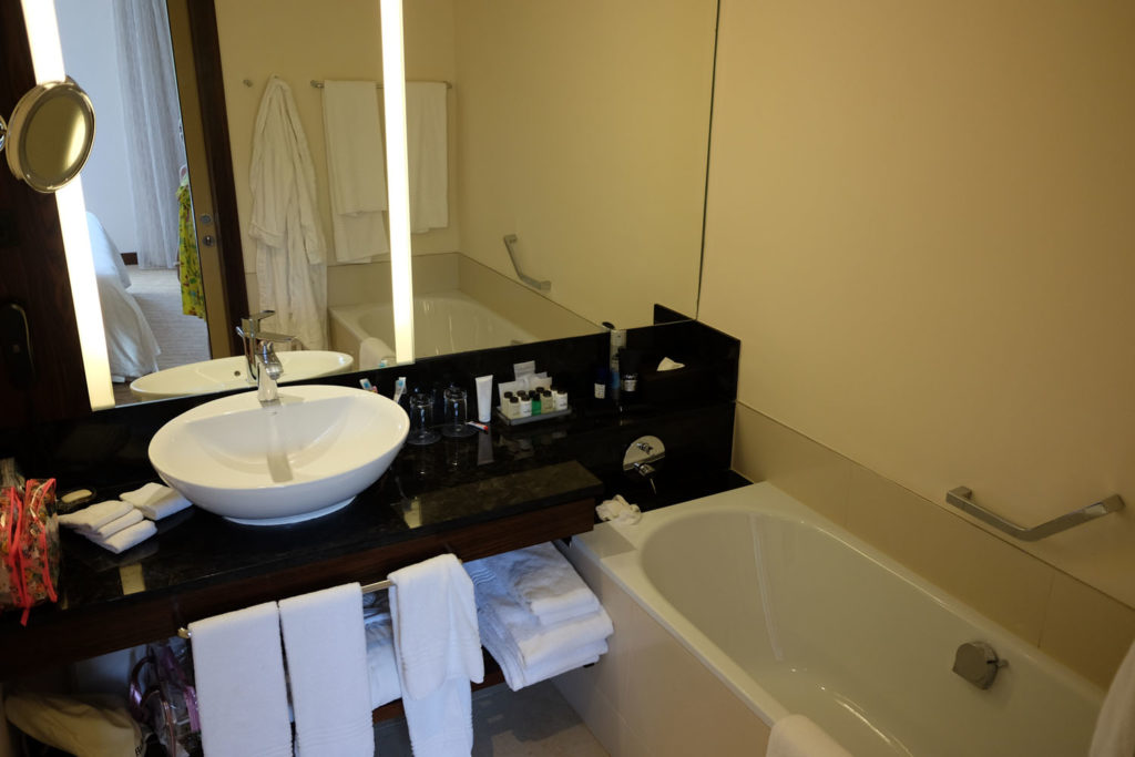 The bathroom was very spacious, with marble top sink, bathtub, large mirror, gorgeous smelling toiletries and a large walk-in shower with one of the most powerful waterfall showers that we have used on our travels.