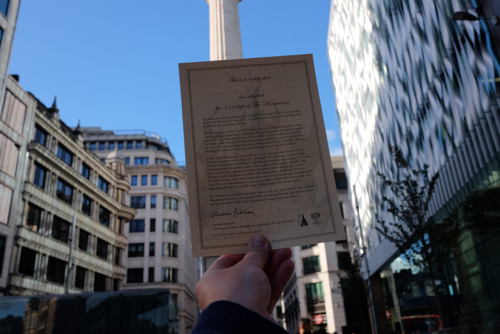 As part of our entrance ticket to the Tower Bridge Experience (£12.00 adults £5.50 children), we also got to climb one of London’s other historic landmarks – The Monument to the Fire of London on Fish Street Hill which was built to commemorate the rebuilding of the city of London after the great fire in 1666.