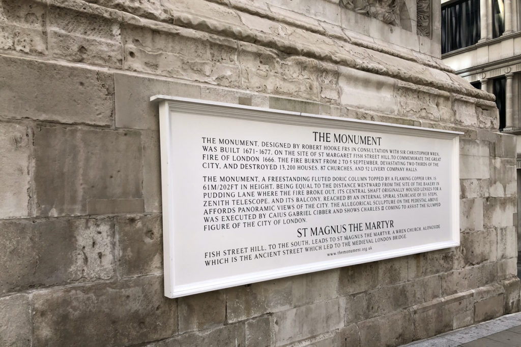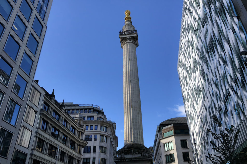 It stretches 202 feet into the sky, the same distance the Monument is from the bakery at Pudding Lane where the fire began.