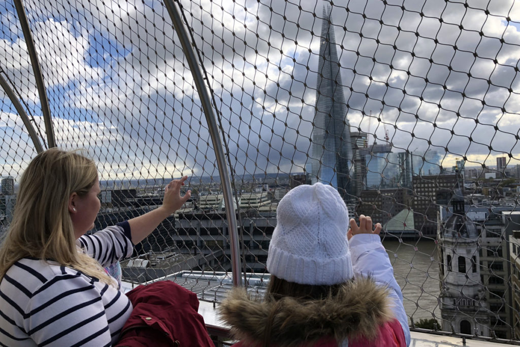 Although you won’t get the same great views as those offered at the Shard or the Sky Garden, this experience was much more a fun family adventure to get to the top.