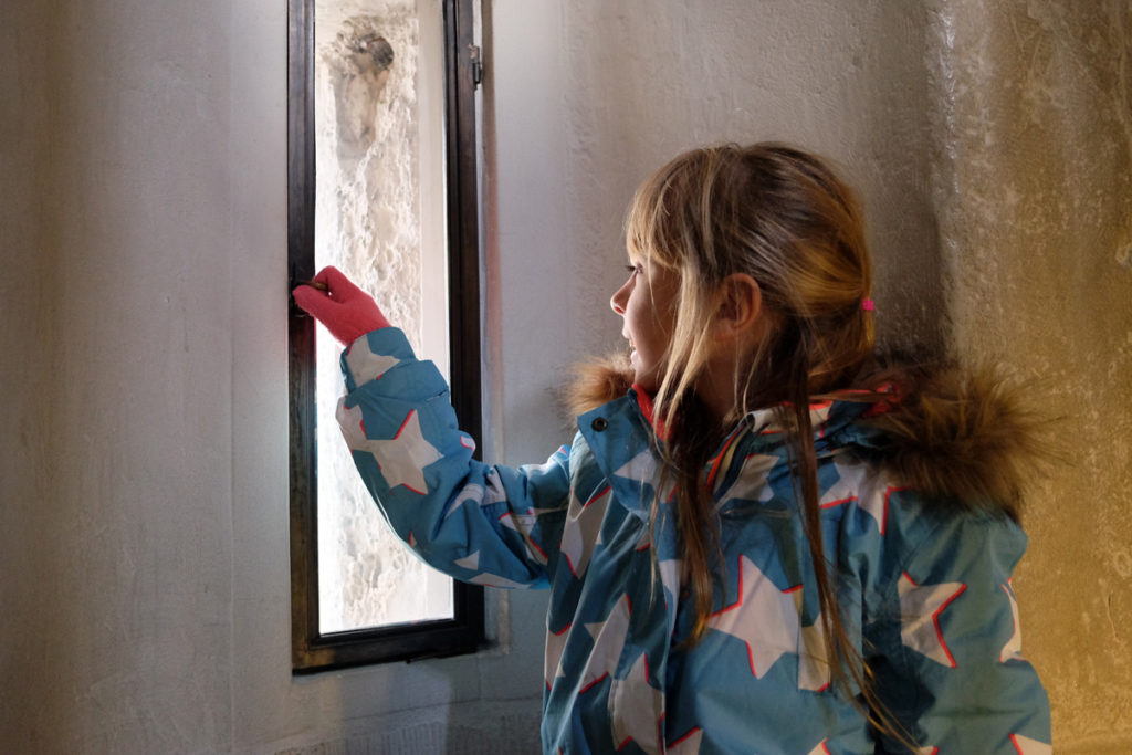 Holly loved stopping off at the many tiny windows en-route to look at the views on the way to the top.