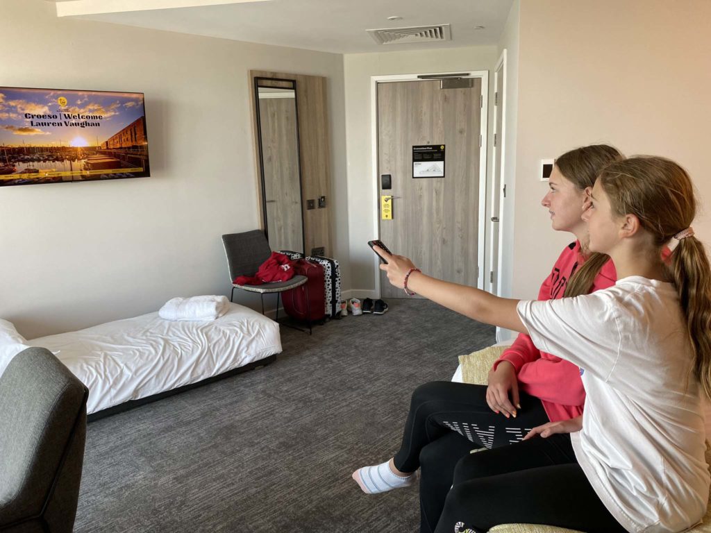 There are 100 bedrooms at the TY Milford Waterfront, a separate apartment and 4 unique rooms floating in the marina next to the boats, called ‘floatels’.