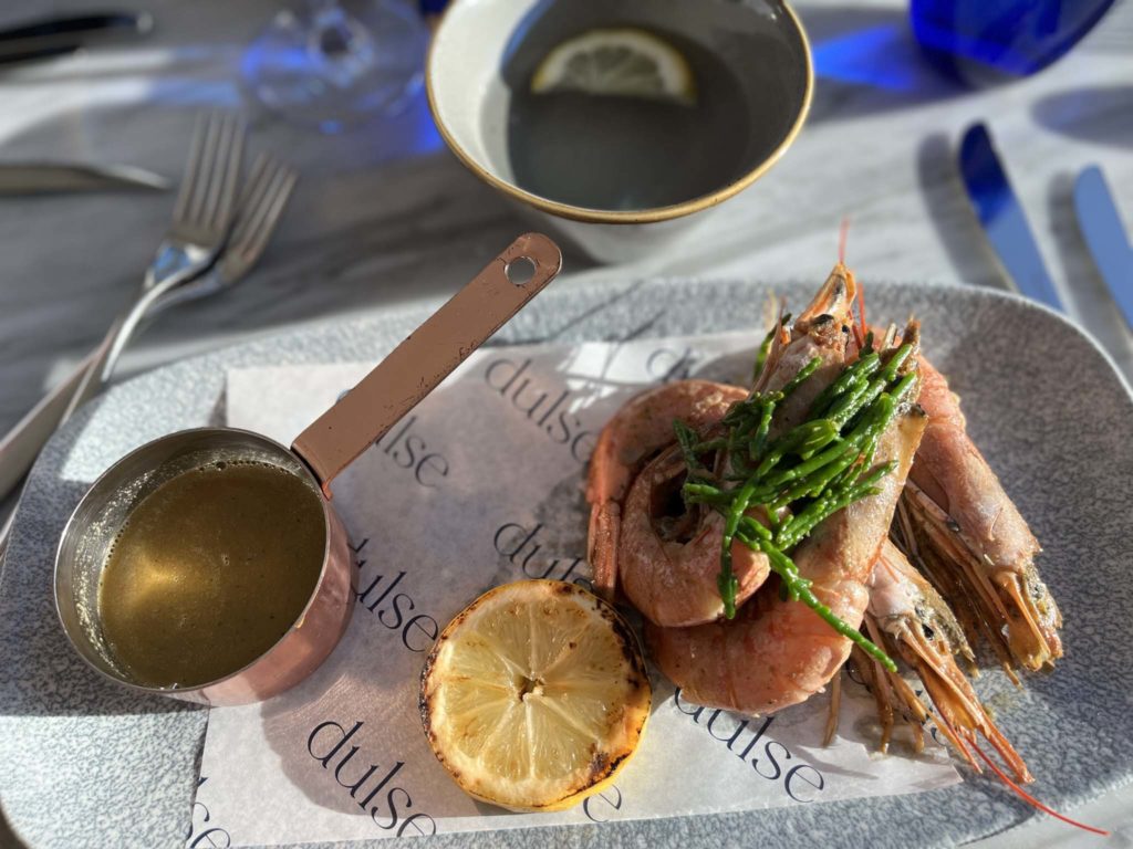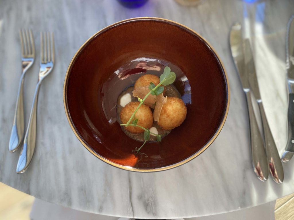 From the a la carte menu to start, we chose the Grilled Tiger Prawns served with Garlic butter, lemon and samphire and the Chicken, Leek & Snowdonia Cheese Croquettes, with Chloe opting for the delicious Local Artisan Bread served with Seaweed butter and Pembrokeshire sea salt.