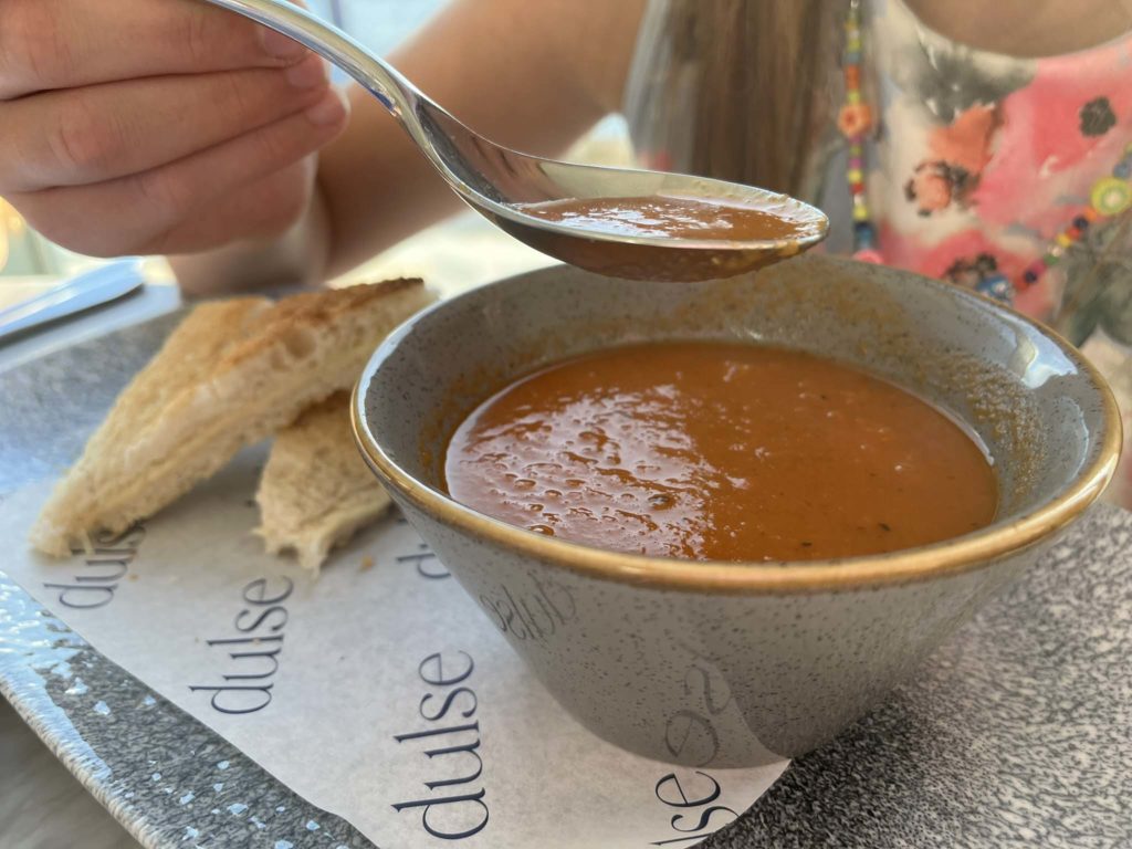 The children’s menu offered a good range of dishes even for the fussiest of eaters. Holly selected the tomato and basil soup with cheese on toast to start and tomato and mozzarella pizza and chips for mains, followed by two scoops of locally made ice cream.