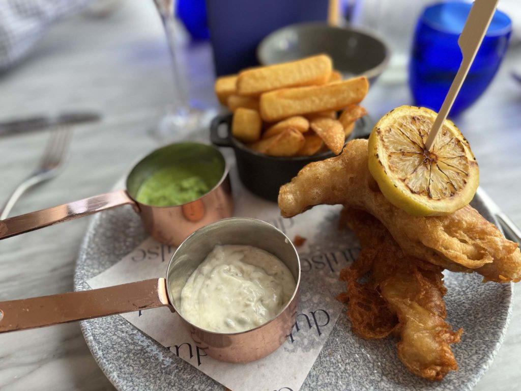 Moving on to mains, Chloe and I couldn’t resist the Market Fish in Tenby Harbwr Beer Batter with Dulse tartare sauce, mushy peas and lemon, served with chips and my husband chose the Pembrokeshire Dry Aged Rump Steak. This was served with stem broccoli, roasted garlic and house chips – all of the mains were as good as they looked.