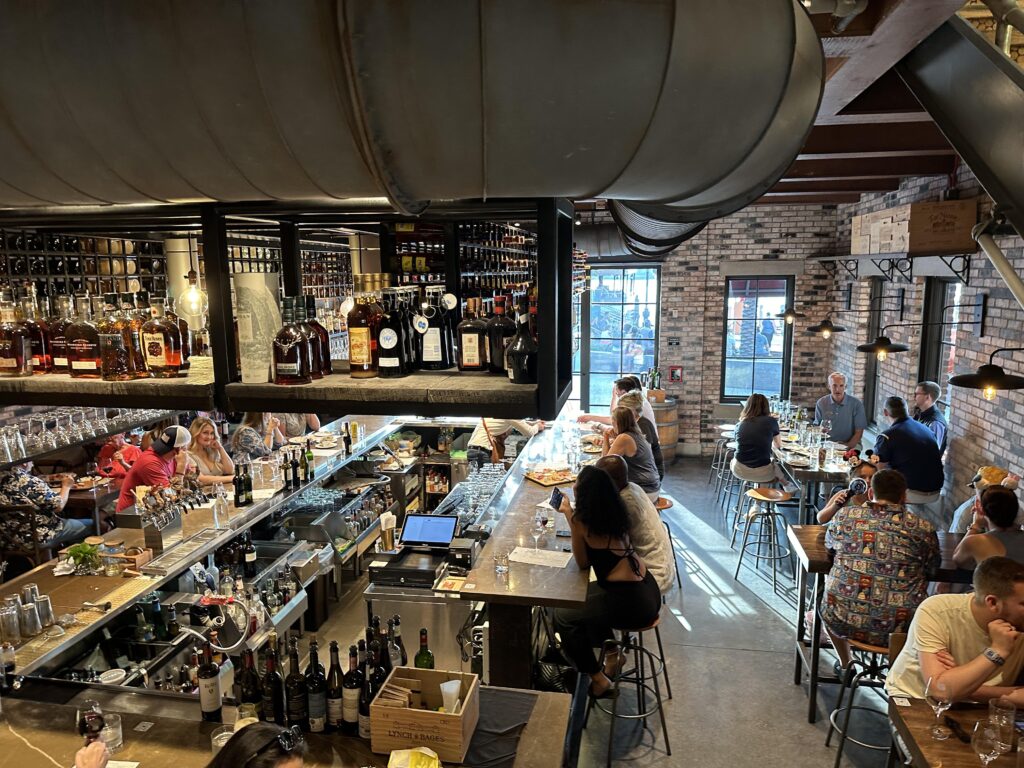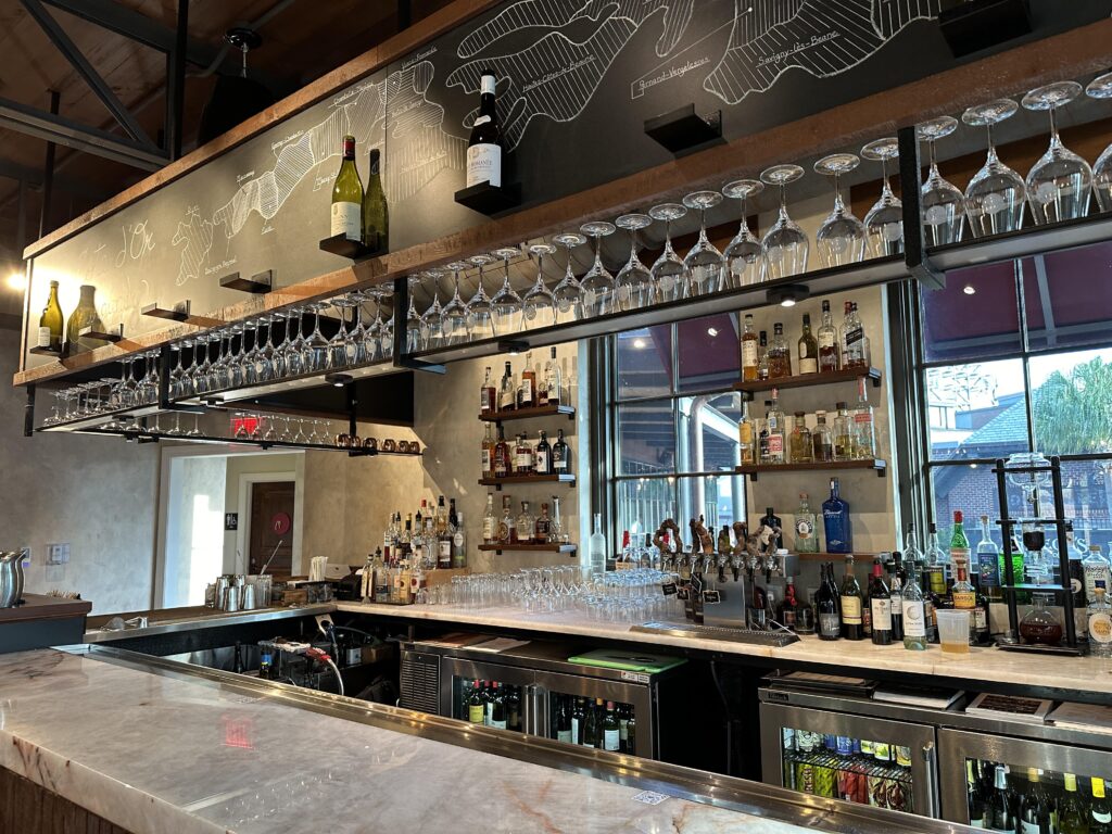 From the outside, Wine Bar George fits right in with the beautiful architectural style Disney has created for its restaurants at Disney Springs. It’s an elegant, yet casual setting that feels both sophisticated and inviting. The moment we stepped inside, I could see why it’s described as “casual yet sophisticated.” The ground floor had a buzzing atmosphere, almost like a casual market bar with wine stacked high over the centerpiece bar, but we were seated upstairs on the first floor.