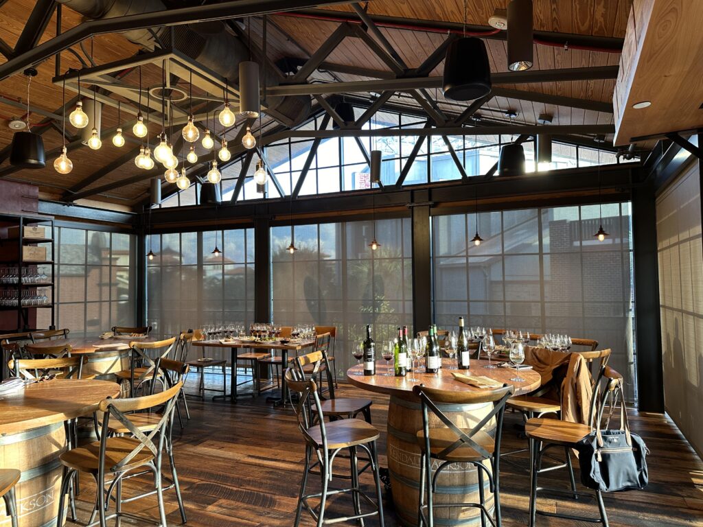 Initially, our host led us to a table on the outdoor terrace, which offers lovely views of Disney Springs. However, given the peak Floridian summer heat, we opted for a table indoors. Inside, the restaurant is beautifully designed with touches like wine barrel-style tables and large floor-to-ceiling windows that let in lots of natural light. While it’s an upscale spot, the atmosphere remains relaxed, and I was happy to see it was very child-friendly, with a kids’ menu available—something that put my initial concerns to rest.