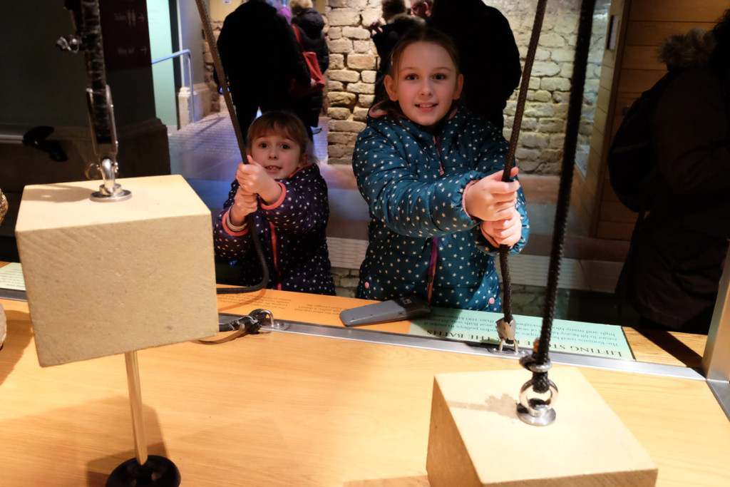Walking past the Sacred Spring and you will find the Kings Bath on your right. There were lots of activities for the girls to take part in and during our visit and one of their favourites was trying to move Bath stone.