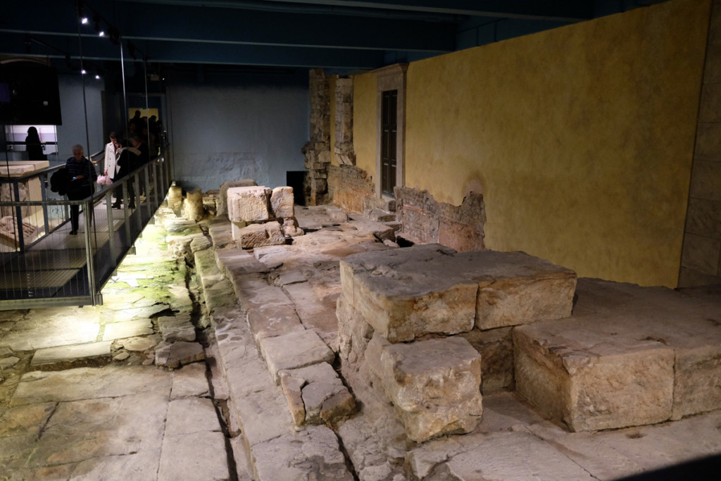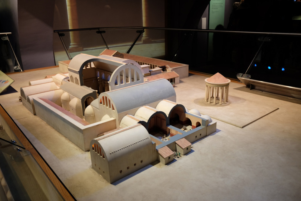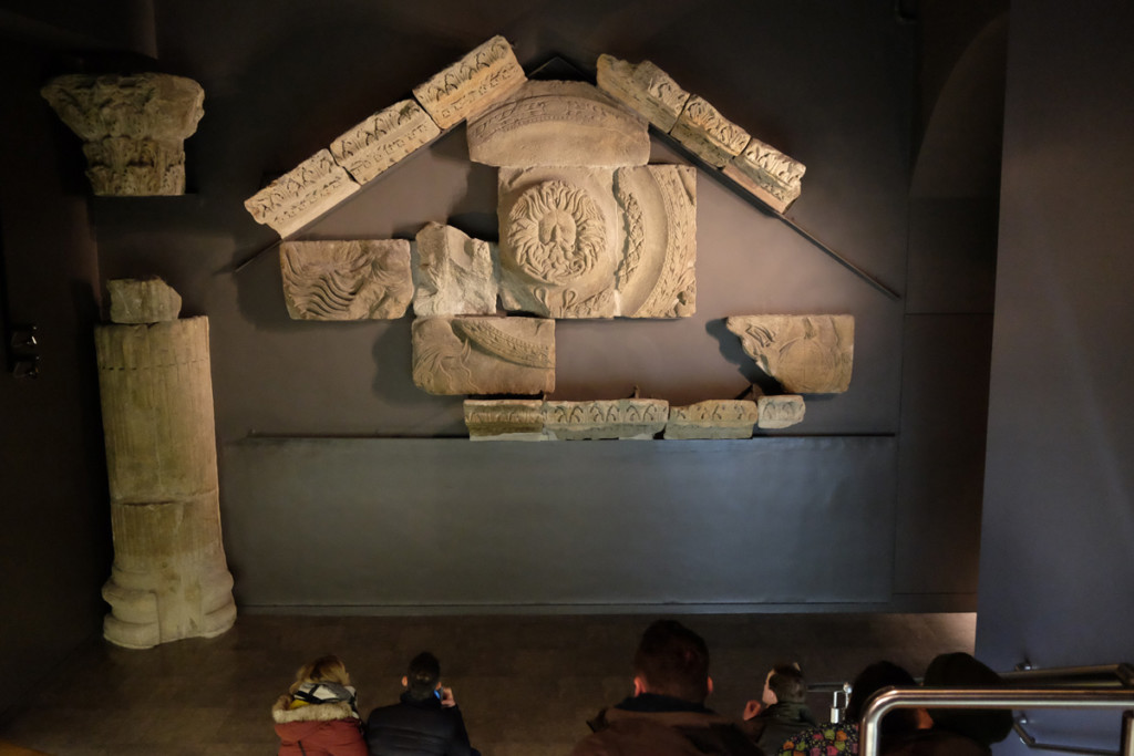 As the tour continued it took us on a wonderful interactive journey, walking over a suspended glass and steel walkway above the ancient temple courtyard. It was here that we saw one of the best known objects from Roman Britain – the gilt bronze head of Minerva which was found in 1727.