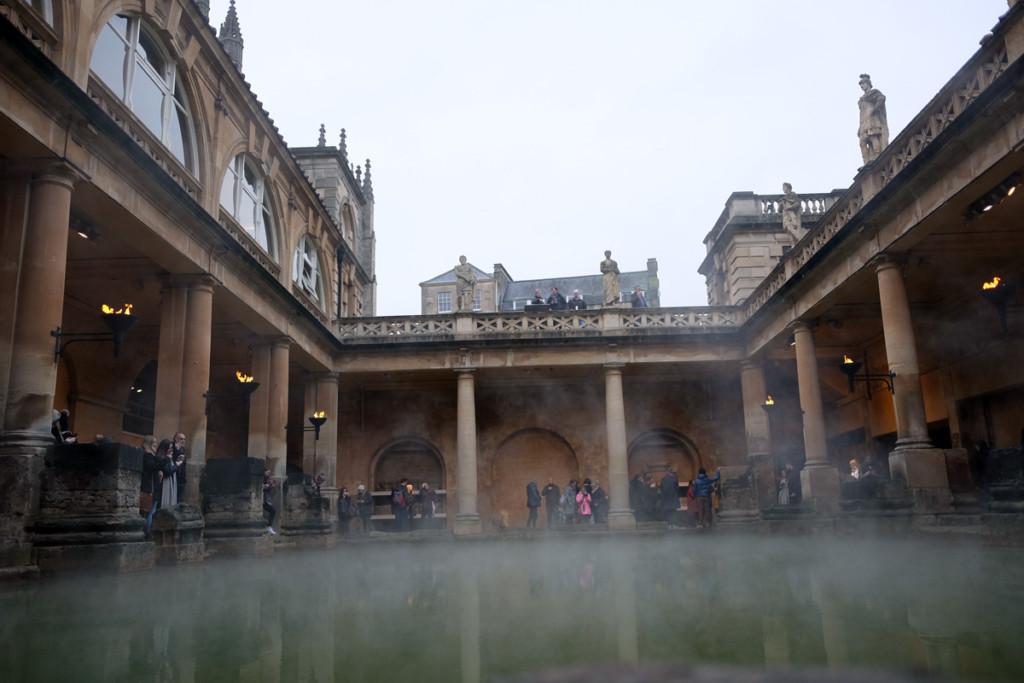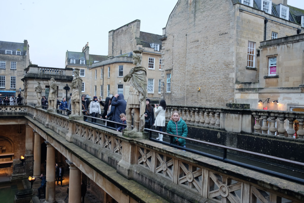 From the terraces amongst the life-size Victorian statues of Roman emperors and governors of Britain you catch your first glimpse of the steaming water of the Great Bath below.