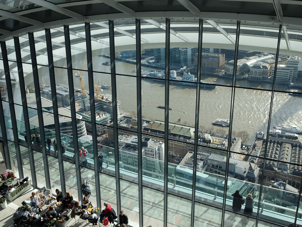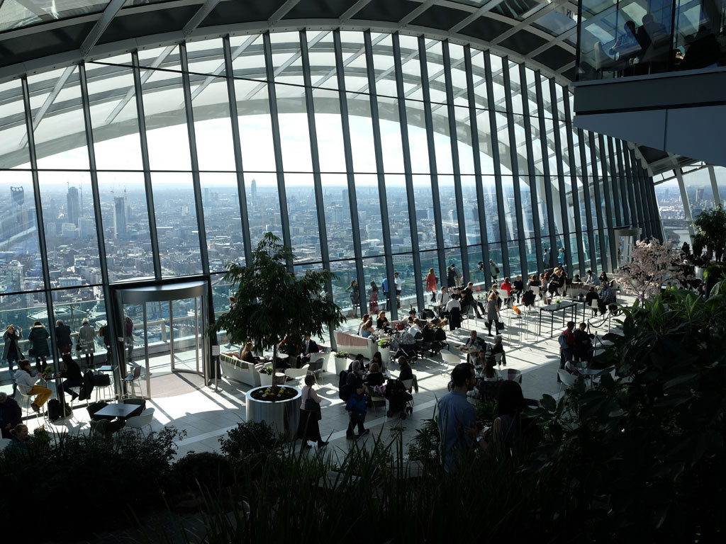 Inside the Sky Garden is a choice of bars, restaurants and coffee shops and lots of people were enjoying the drinks and lunch at the Sky Pod Bar whilst admiring the spectacular views.
