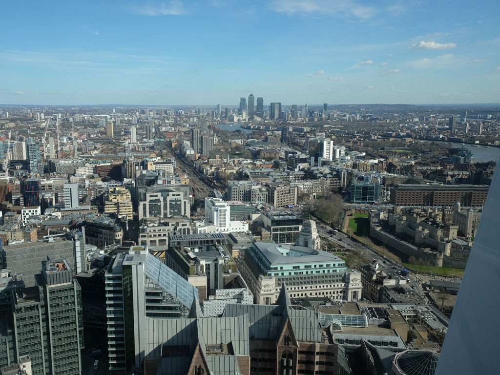 In the distance the iconic Canary Wharf looks so small to the east, while the Tower of London is laid out below for a spectacular view.