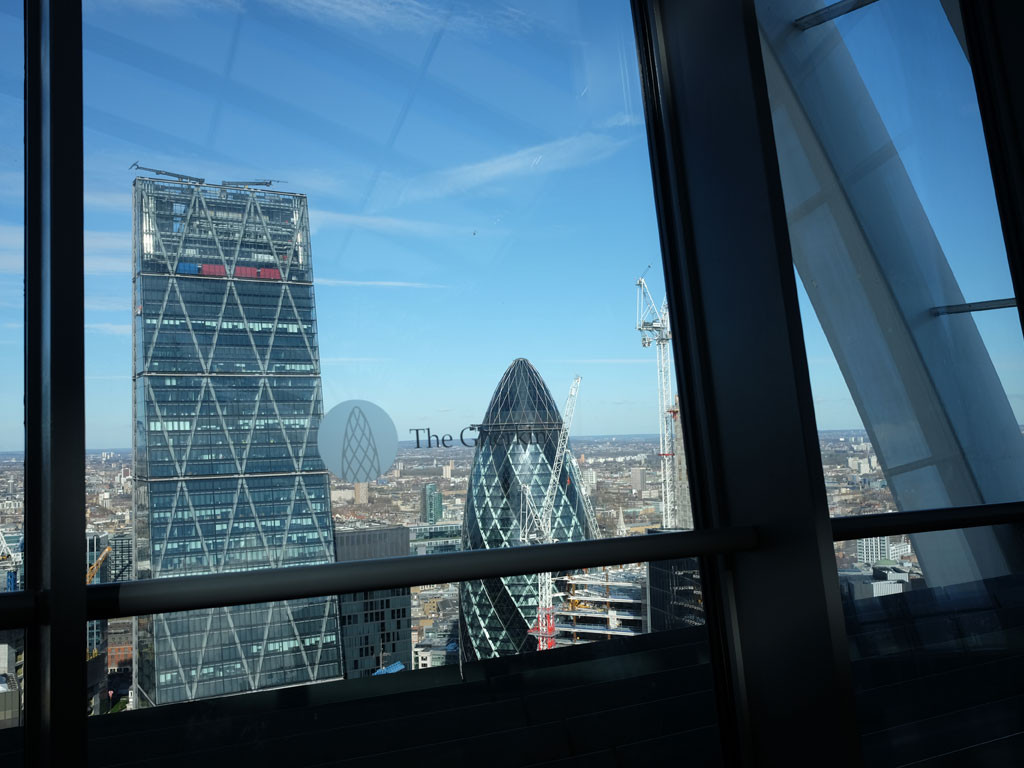At the top of the stairs we reached another large enclosed viewing area, looking north. The views of London once more are spectacular with the Leadenhall Building, Gherkin and NatWest Tower lined up like chess pieces in a row.
