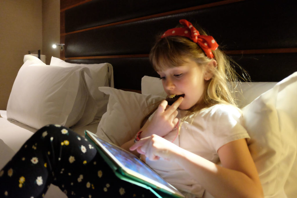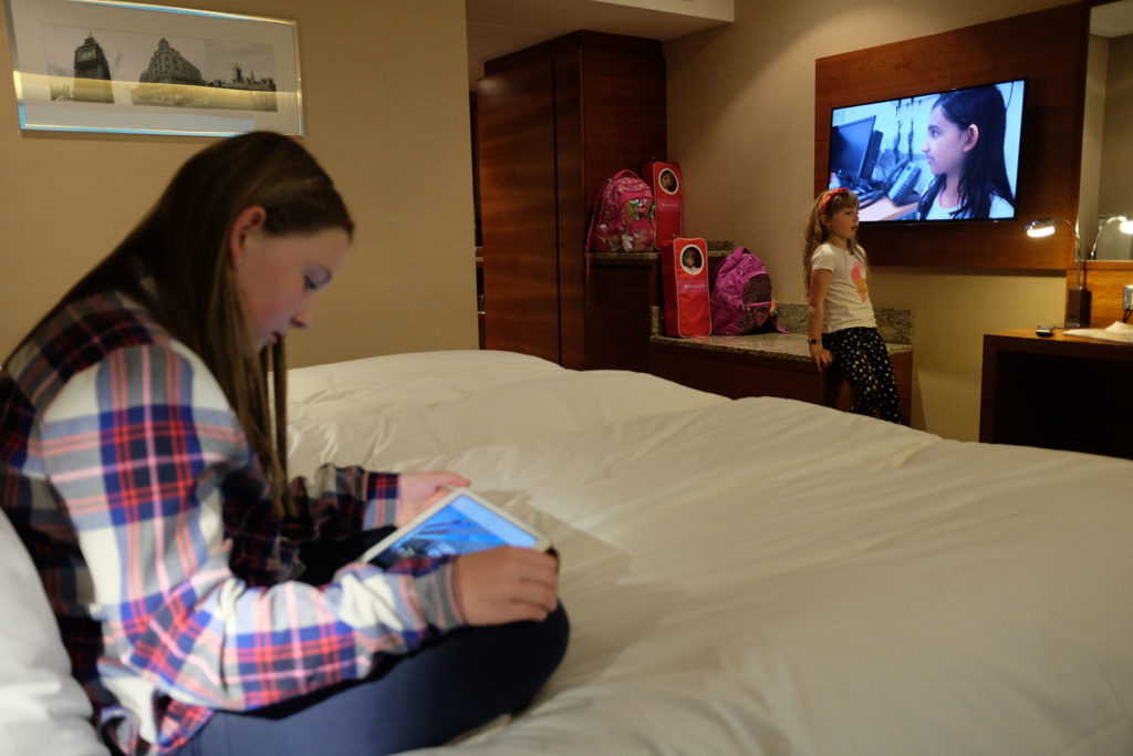 Chloe and Holly soon made themselves at home, settling in watching their TV and using the complimentary WiFi for their iPads – a definite pre-requisite when travelling with kids. There was also a spacious work desk and plenty of plug sockets in the room to ensure that all of our gadgets could get charged before our flight the next day.