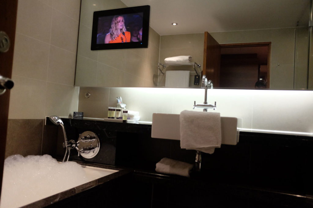 With a huge walk-in shower with a fantastic rainfall showerhead and a separate bath complete with its own television (a bonus of staying in the luxury rooms) This was one of the many highlights of the rooms for the girls as they watched Britain’s Got Talent from the comfort of their bath.