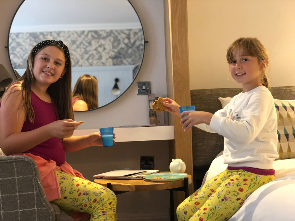 But there were also so many thoughtful little touches. On each of the girls beds were welcome gifts of activity books, cookies and fresh milk, drinks and chocolates along with V.I.Little P dressing gowns and slippers that they could use in the hotel spa. It’s these little details that make the Solent Hotel a good choice for families, the girls loved it.