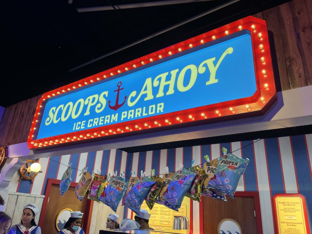You are free to explore this area on your own and after a photo-op in front of the huge Stranger Things sign that catches your attention as you enter we made a beeline for Scoops Ahoy.