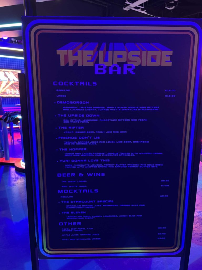 Using our VIP ticket lanyard we redeemed the token to get our limited edition tote bag and Stranger Things gift (worth approx. £30) before visiting the Upside cocktail bar to have our complimentary drink, another bonus of paying extra for the VIP ticket.