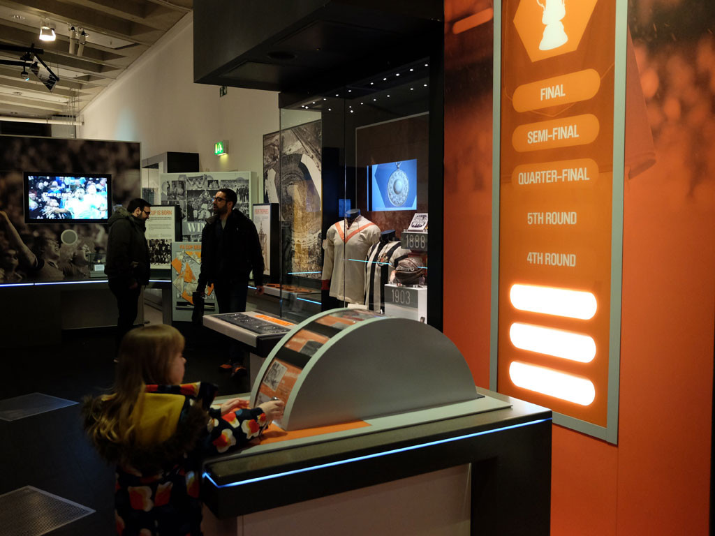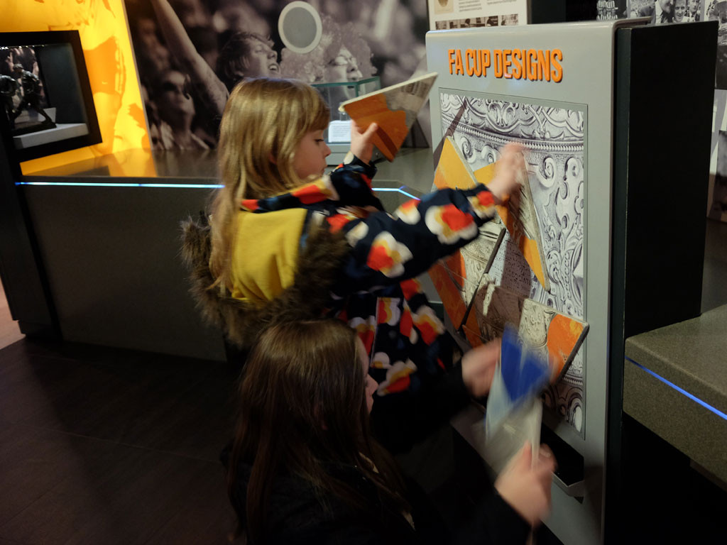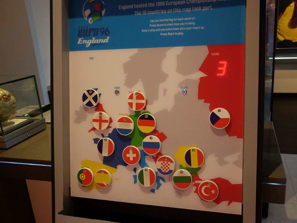 hands on activities to enjoy from picking a football mascot, seats from the original Wembley stadium,  FA cup jigsaws to racing against the clock placing the correct countries flags on the map from Euro 96.