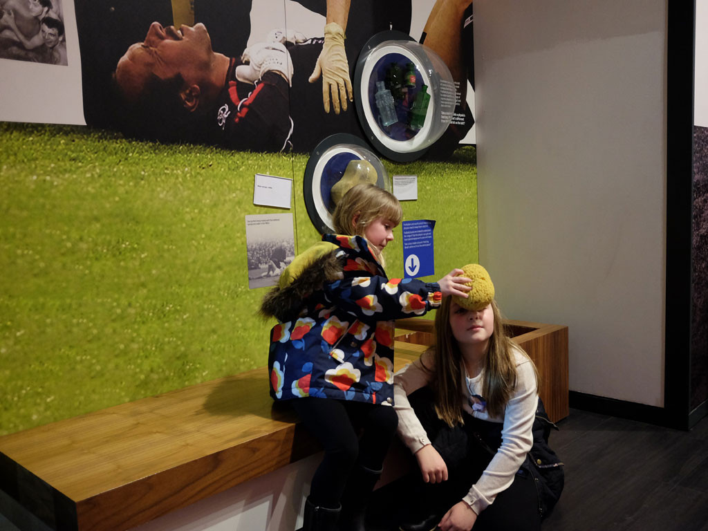 The girls loved looking at the heavy old footballs and it was interesting to see a fully interactive human body highlighting common injuries.  There was even a medical bag complete with the infamous magic sponge!
