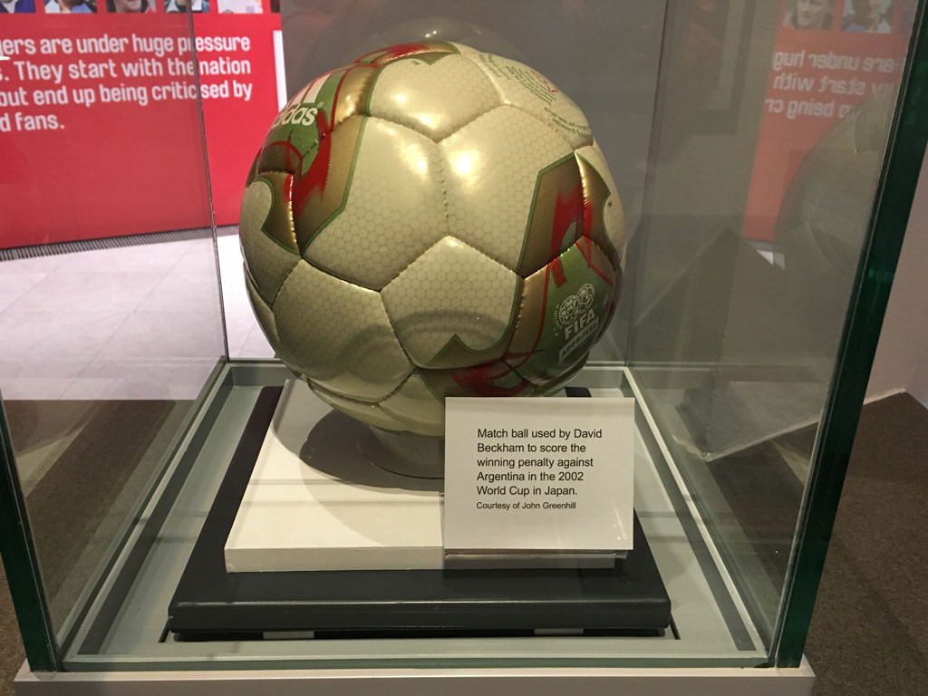 There are dozens of footballs on display from famous matches, including the one scored by David Beckham in England’s World Cup win against Argentina in 2002.