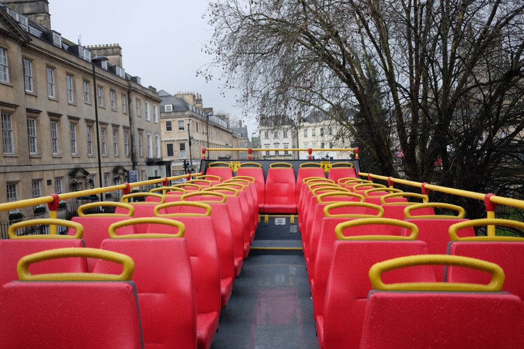 As the queues at midday were snaking around the square our dusk visit made great sense (the best times to visit the Roman Baths especially at weekends and during school holidays are first thing in the morning or at dusk when the queues are quieter) and we went to track down one of the cities famous bright red hop-on bus tours.