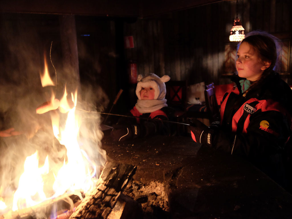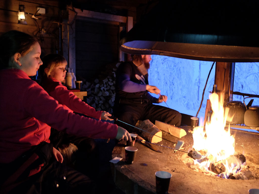What better way to warm up from temperatures which got as low as -25 degrees Celsius than some hot berry juice and sizzling sausages over the fire in a traditional Finnish Kotta hut.