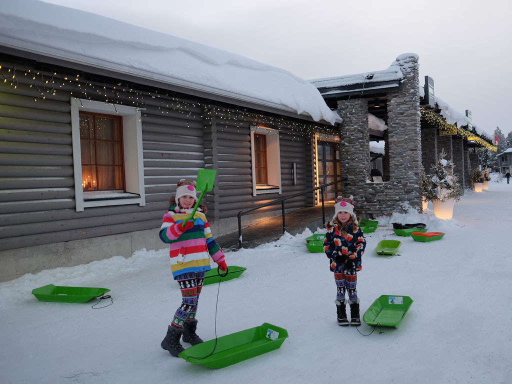The girls loved the fact that they could explore the town of Levi on the little sledges that were freely available outside of our hotel (the Levi Hotel Spa) and quickly became their favourite mode of transport to get around Levi.