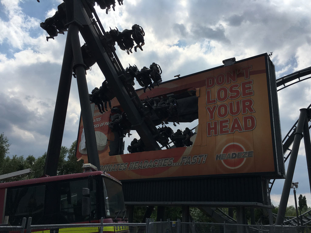 Given the girls age and height, the extreme rides such as Stealth, Nemesis Inferno and Swarm were out of the question but we had fun just walking through these areas.