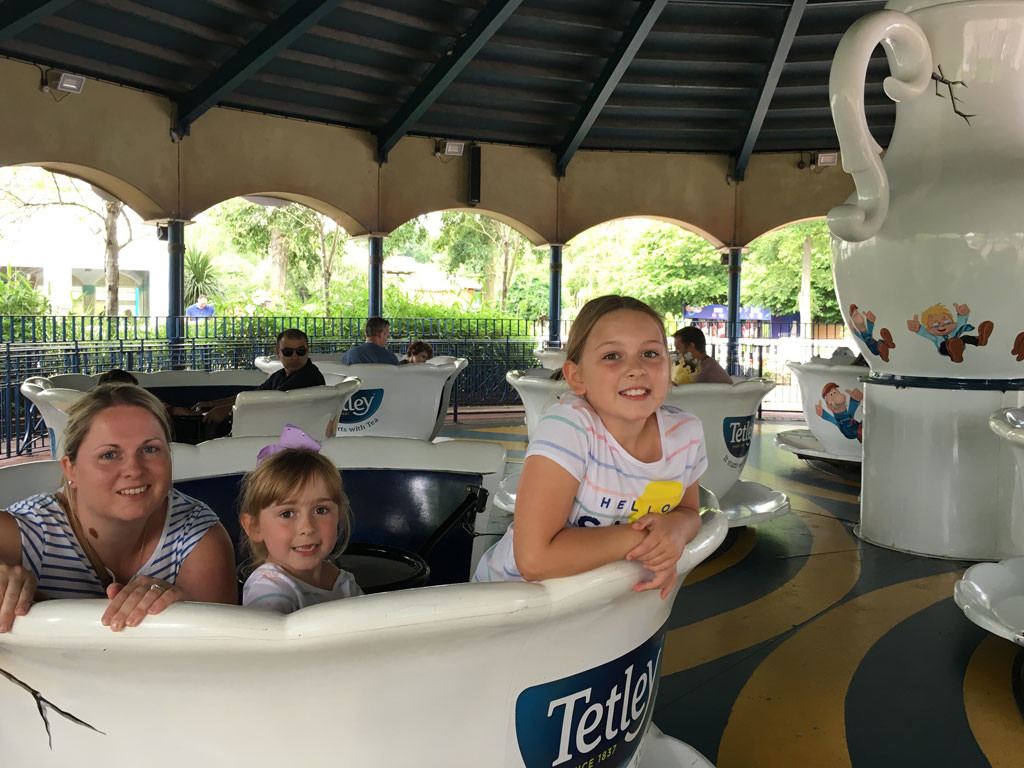 Only in Thorpe Park would you get a Tetley Tea branded tea cup ride. This was one of the most memorable rides of our visit basically because the girls loved the ride assistant who was making them laugh shouting “When I say Tetley you say Tea”. When the word “Tetley” was shouted they would scream back “Tea”.