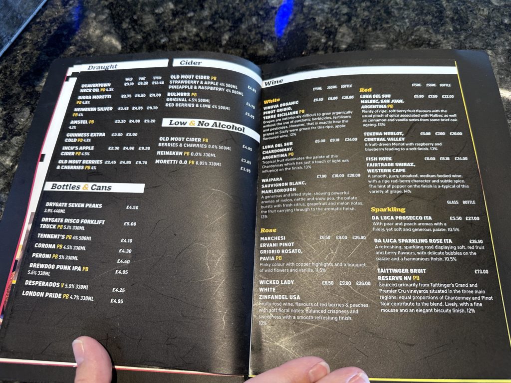 The food and drink menu here is extensive and with it being in Scotland, there were some Scottish dishes on the menu such as Haggis nachos.  A separate kids menu was also available including burger and fries, chicken goujons and mac and cheese bites.