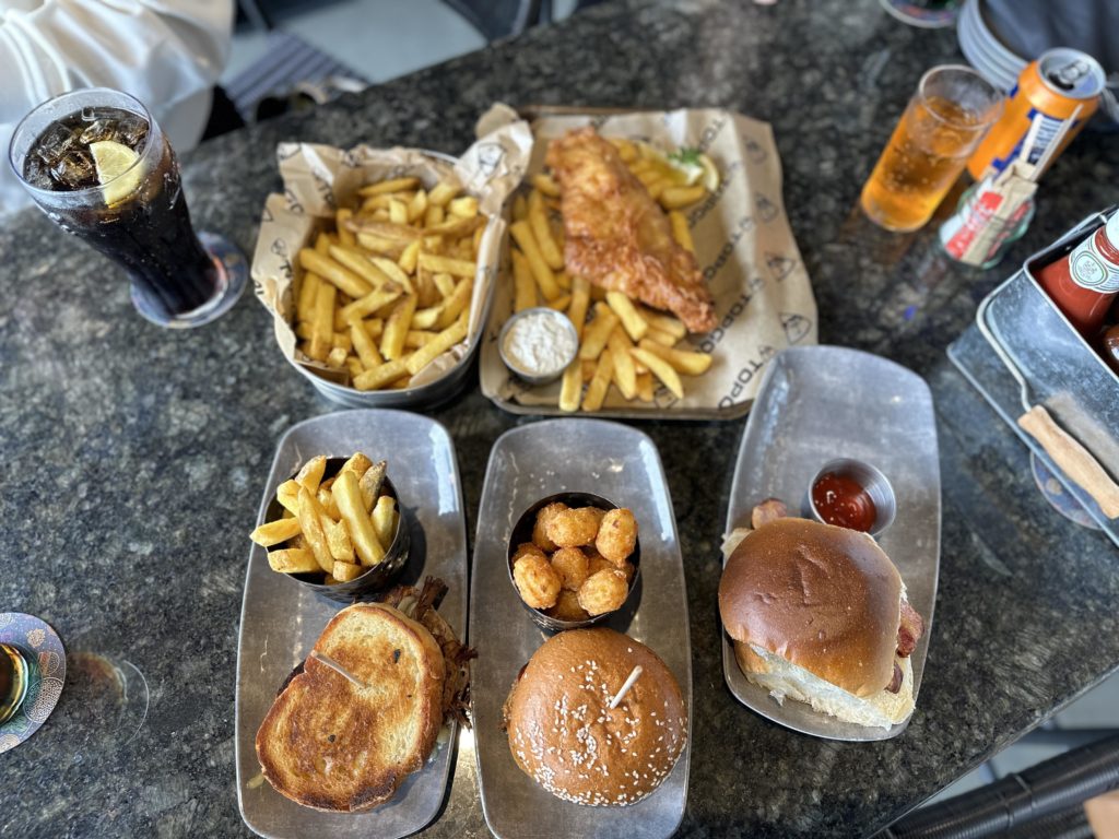 The girls went for fish and chips and a bacon roll with chips whilst Ian and I chose the BBQ pulled pork sandwich and the brisked grilled cheese, all of which was excellent and reasonable priced.