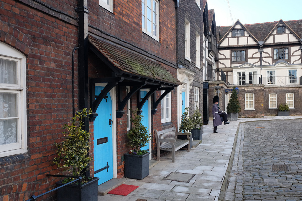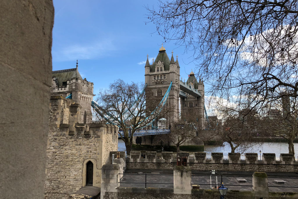 This area is also a great place to sit and relax and view the homes within the tower walls. We never knew that people actually live inside the tower and the paint on the doors of where they live is actually the same paint that is used on Tower Bridge nearby!