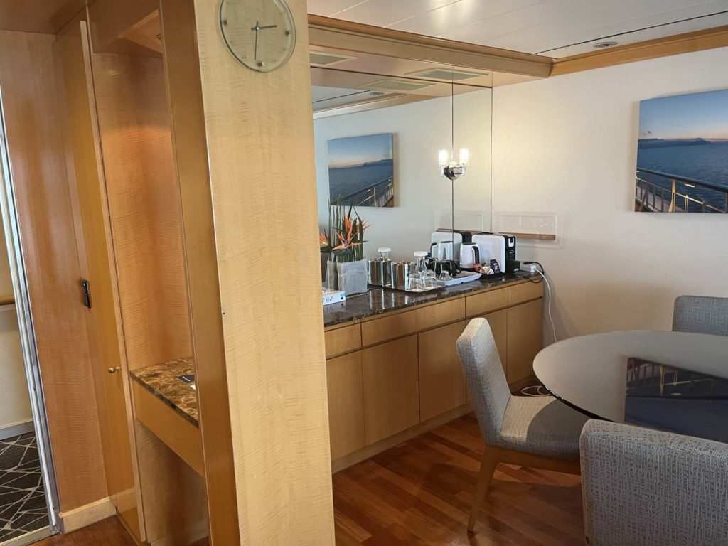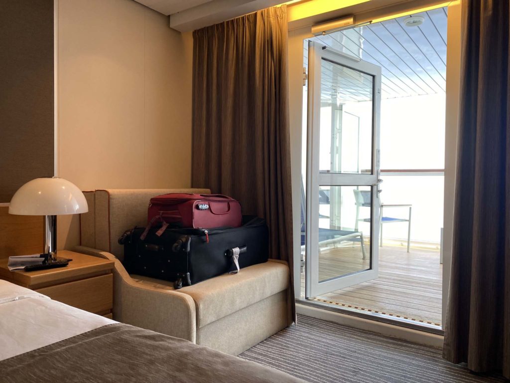 Although the cabin at 16m2 is slightly smaller than a balcony cabin, what you are gaining is a significant amount of outdoor space offering lots of space to relax.  The balconies in these cabins will be some of the largest non-suite balconies that you will find on any cruise line.  Our balconies were large enough for 2 sunlounges, table and 2 chairs and a hammock.