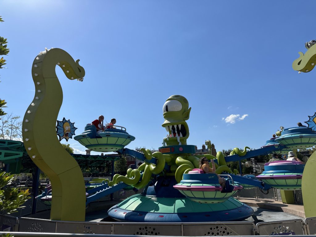 We battled aliens with Will Smith in Men in Black Alien Attack before being transported into the cartoon world of the Simpsons riding on spaceships with Kang & Kodos’ Twirl ‘n’ Hurl ride!