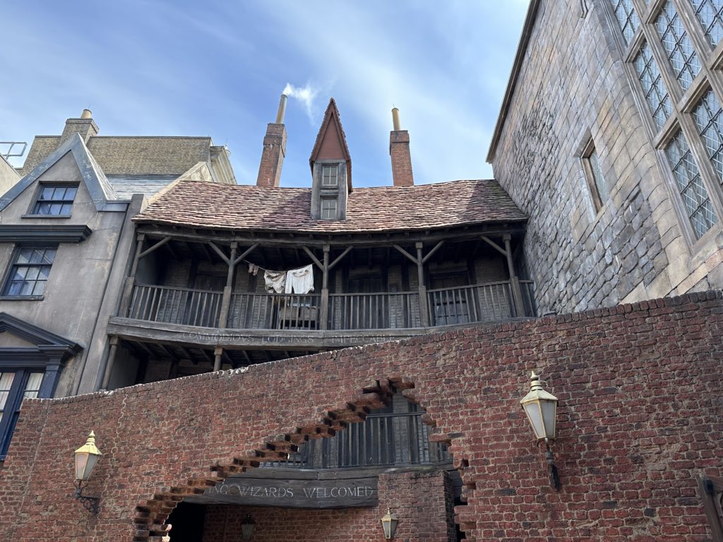 It seemed strange seeing famous London landmarks such as Leicester Square and Kings Cross in central Florida and after having fun with the interactive shrunken head on the Knight Bus we found the hidden entrance into Diagon Alley.