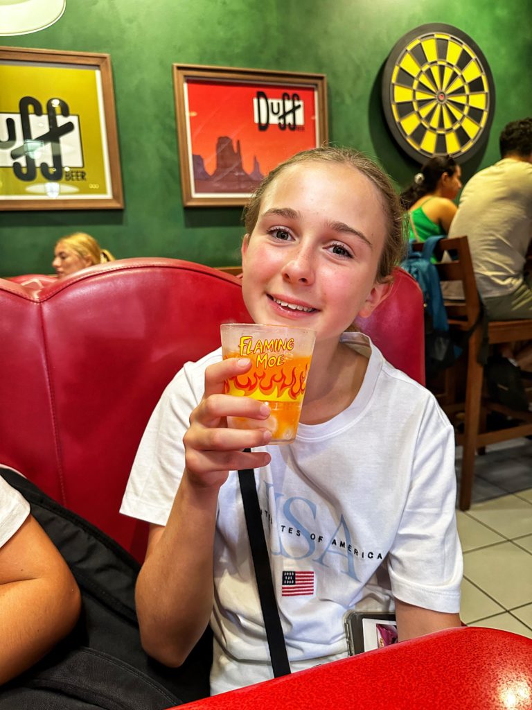 That’s what we love about Universal Studios, the lands are so different and each offer a different experience. The Simpsons area was a favourite with Ian and Holly, which like the rest of the park has been so cleverly recreated, it cleverly brings the cartoon to life. We posed for selfies with Springfield residents and even got to try the iconic Flamin Moes drink at Moe’s Tavern.